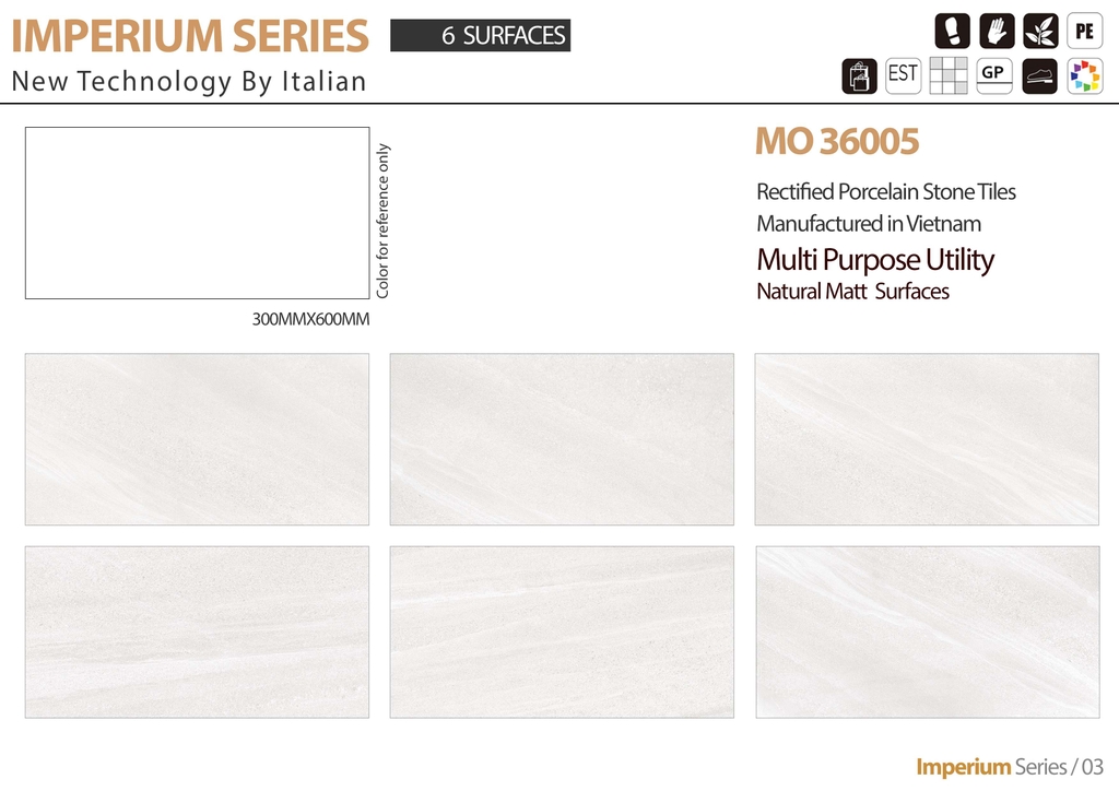 Đặc tính: gạch Porcelain đá mờ ốp lát màu nhạt