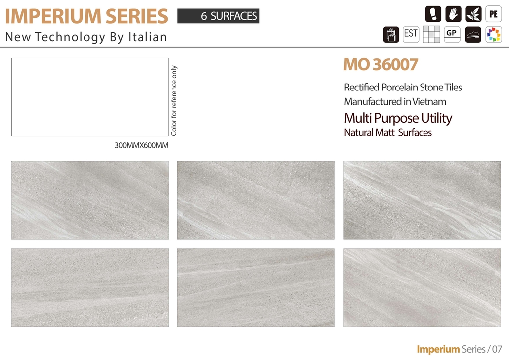 Đặc tính: gạch porcelain đá mờ ốp lát màu nhạt