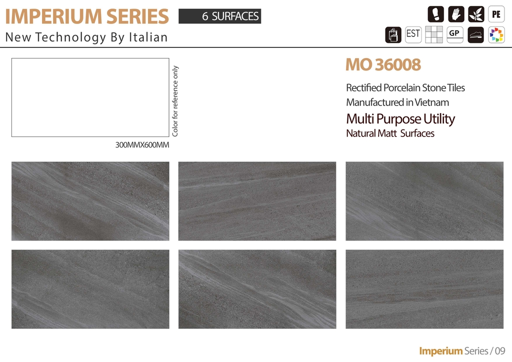Đặc tính: gạch Porcelain đá mờ ốp lát màu đậm