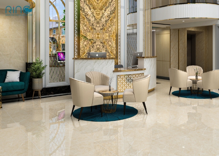 Với thiết kế tỉ mỉ, mẫu gạch này mang lại vẻ đẹp tinh tế nhưng không kém phần nổi bật, phù hợp với những không gian yêu cầu sự sang trọng và đẳng cấp. Bề mặt gạch được mài bóng, họa tiết vân đá marble được thiết kế tinh tế và độc đáo cũng giúp tăng tính thẩm mĩ và sang trọng cho không gian.